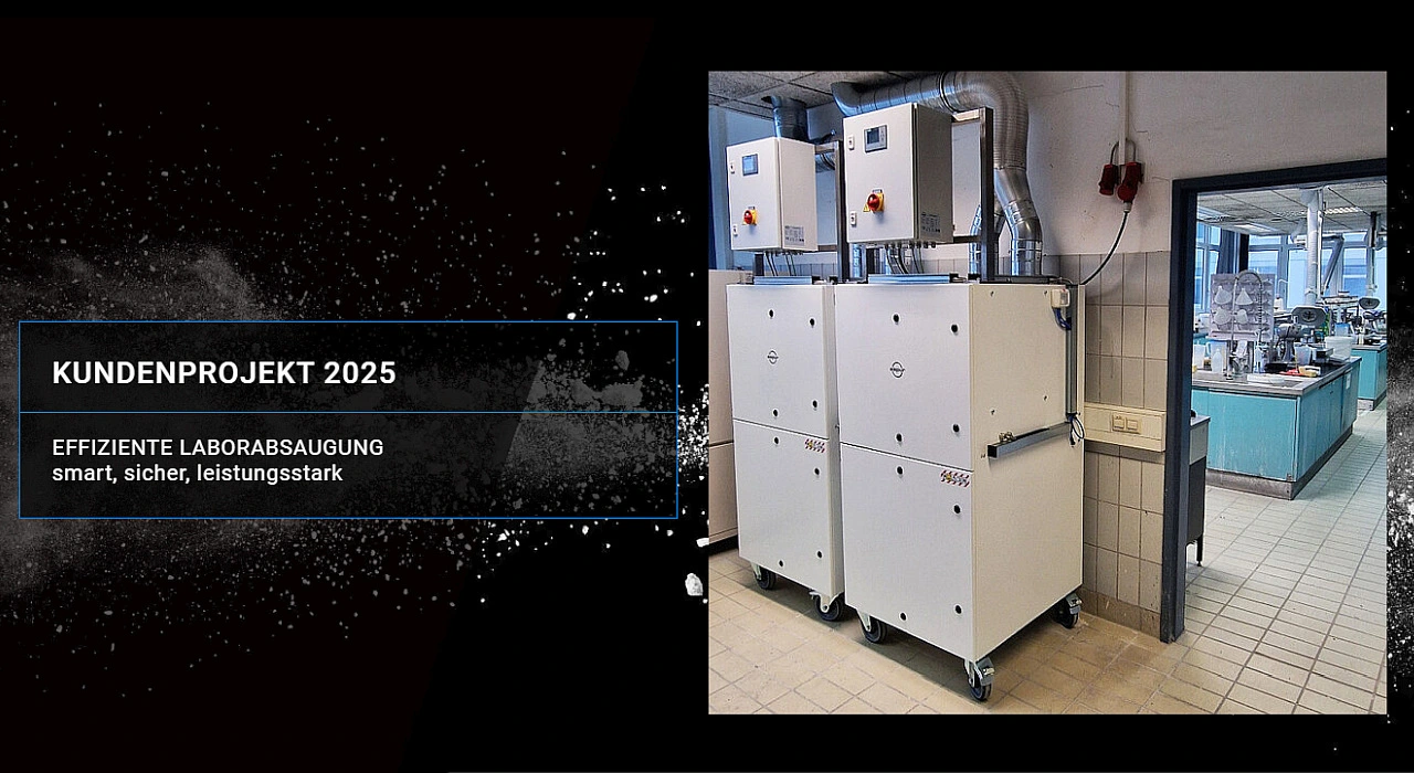 In modernen Laboren entstehen bei vielen Prozessen feine Stäube, Gase und unangenehme Gerüche – sei es bei der Arbeit mit Chemikalien, Lösemitteln oder Pulverförmigen Stoffen. Um die Gesundheit der Mitarbeitenden zu schützen und die Luftqualität dauerhaft hochzuhalten, setzen wir auf ein durchdachtes Absaugkonzept mit intelligenter Steuerung und leistungsstarker Filtertechnik.