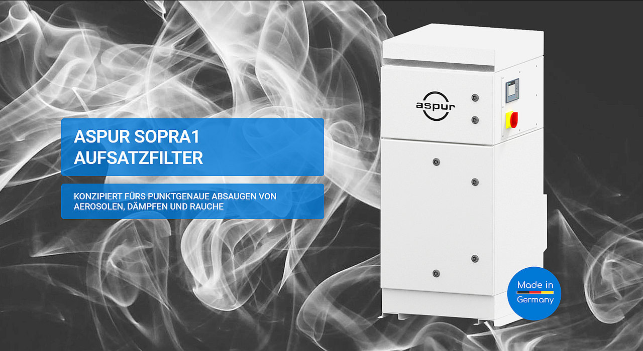 aspur air solutions bringt mit den Öl- und Aerosol-Nebelabscheider der Baureihe sopra neue Aufsatzfilter für Bearbeitungszentren sowie Dreh,- und Fräsmaschinen auf den Markt. Diese erweitern und ergänzen das Produktportfolio der Baureihe "Stationäre Ölnebelabscheider aerog".