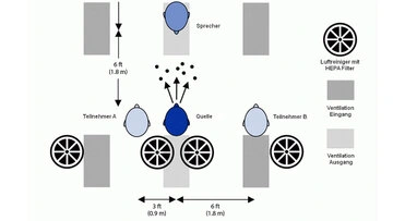 Studie zur Wirksamkeit der Reduzierung von Aerosolen in Innenräumen durch Einsatz von Luftreiniger. Eine simulierte Sitzung mit 4 Teilnehmern und simuliert ausgeatmeten SARS-CoV-2-Aerosolen.